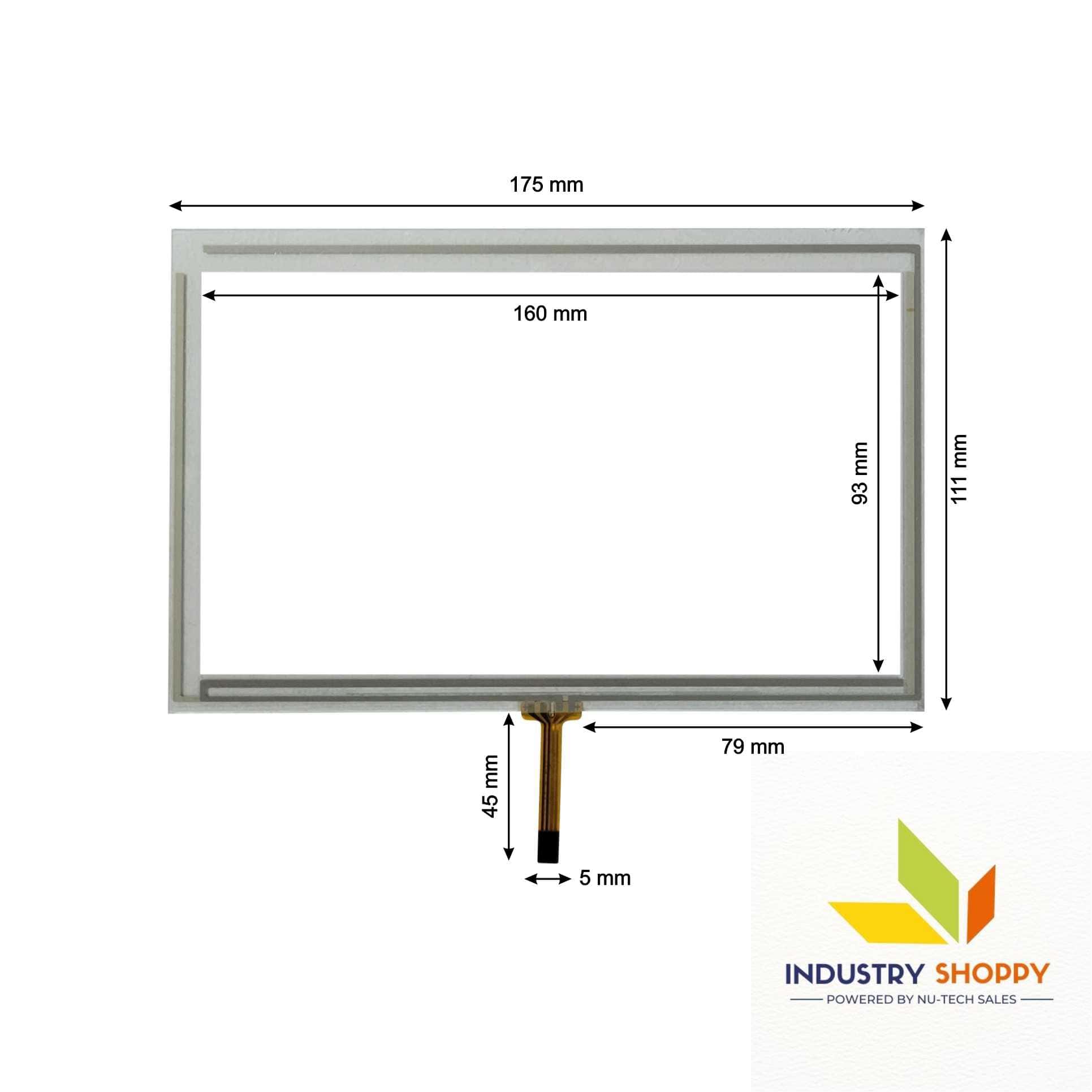 This NTS touch is specifically compatible for Touchwin TG765S-MT HMI. It is engineered for high-performance HMI applications, combining compact design with precise user interaction. Measuring 175 mm in length and 111 mm in breadth, it features an ample active area of 160 × 93 mm, providing a smooth and responsive touch experience across industrial automation systems.