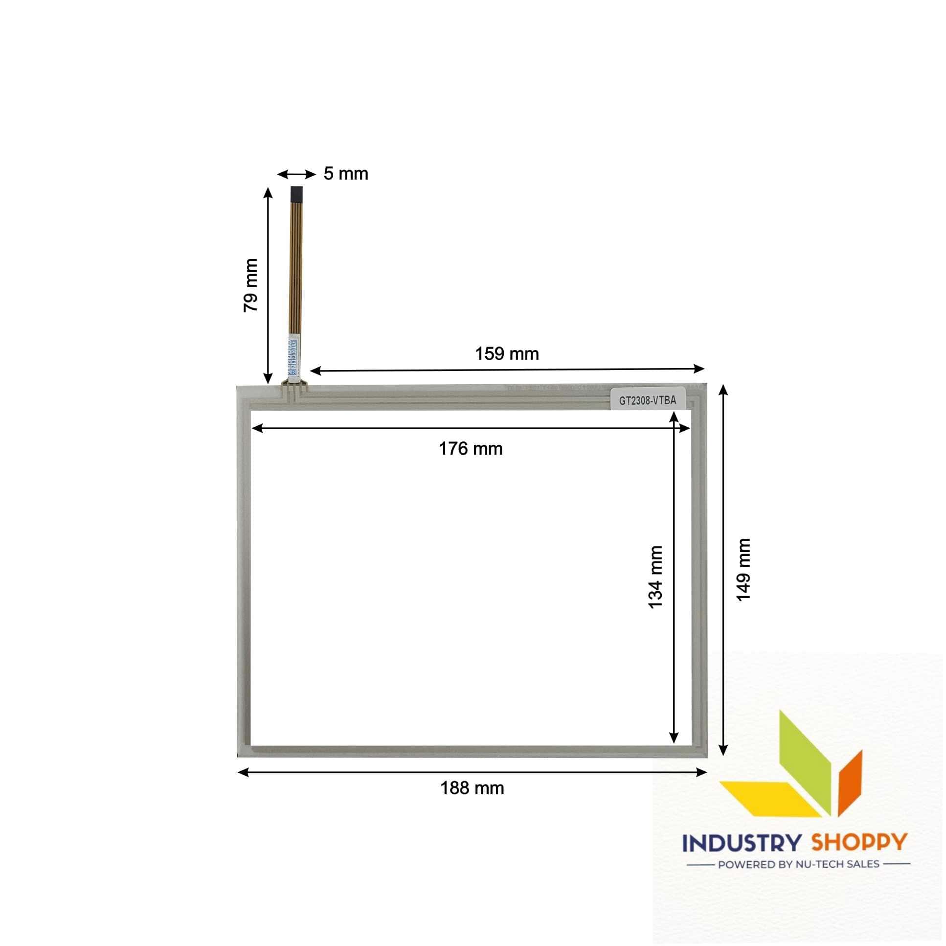 With a compact design of 188 mm (L) × 149 mm (B) and an active area of 176 mm × 134 mm, this touch panel provides accurate touch response for industrial applications. It features a 4-pin interface, a wire length of 79 mm, and a wire width of 5 mm, ensuring stable connectivity and efficient operation.